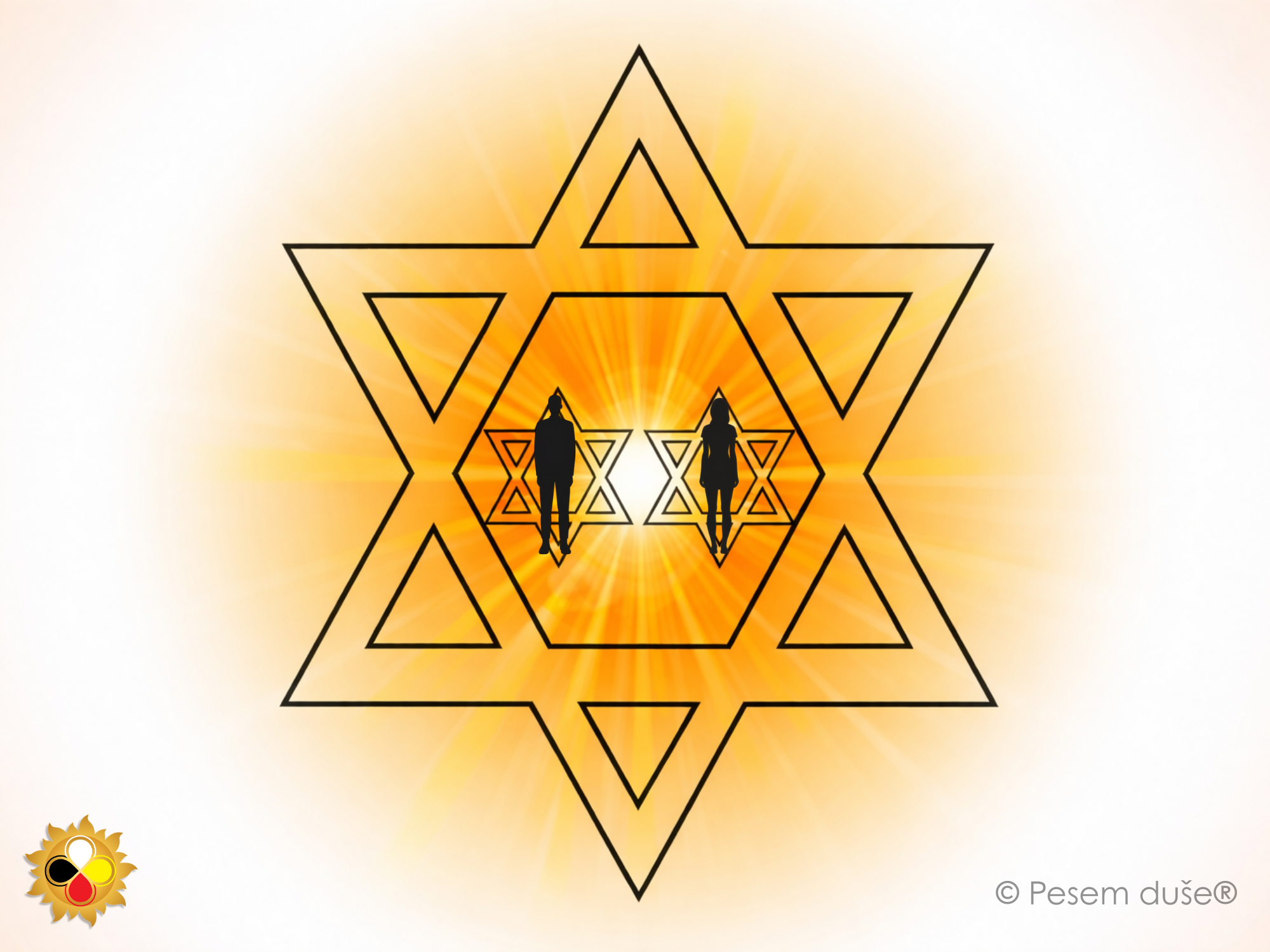 Sedaj v mislih pokličemo bitje, ki nam je komplementarno in mu naredimo isti heksagram neskončne svetlobe, kot smo ga naredili za sebe.