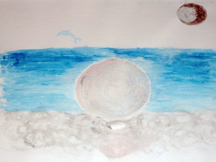 "To je velik napredek. :) Ne iščem več smisla v svojem ustvarjanju na način "kaj naj narišem, da bom lahko to obesila na steno/podarila; če bo slika preveč abstraktna, itak ne bom vedela, kam z njo - tako ali tako bi se ji vsi čudili itd." Prvič se mi je zgodilo, da sem sanjala svojo sliko - že ponoči, ko sem se zbudila, sem vedela, da to sliko enostavno moram naslikati. Čez dan se je ta občutek samo še stopnjeval in nastala je slika, ki bi jo lahko gledala cel dan - tudi fant je navdušen nad njo :) In tudi samo slikanje je dobilo povsem druge razsežnosti - občutek, ko sem povezana s sabo, s svojimi vodniki, je čisto drugačen, kot je bil do sedaj občutek ob ustvarjanju. Dejansko se ob tem počutim izpopolnjena, na nek način deluje name "terapevtsko". Občutek izmučenosti je zamenjal občutek kot da sem našla nekaj, kar sem nekoč izgubila". M.R. |