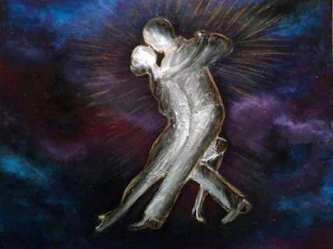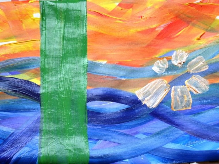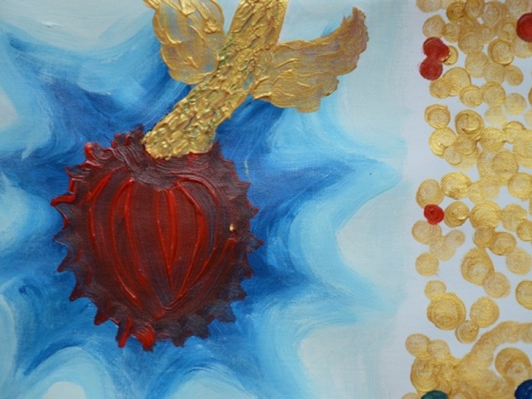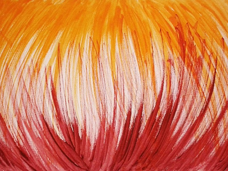 Draga Urška, v dneh po delavnici sem čutila kanal, sedaj ga vizualiziram lažje kot prej. Vsak dan se je še kaj odprlo in dogodki so si sledili z mojo dejavnostjo. Sliko sem dokončala v skladu z notranjimi navodili, kot sem jih zaznavala. No, rezultat je že na steni in moram ti priznati, da sem pri sebi zelo ponosna, da sem presegla stara prepričanja in ponosna na sliko. Slikanja sem se lotila prvič in v dneh po delavnici sem si priskrbela material za nadaljnje ustvarjanje na platno. V mislih imam že naslednji projekt. B.W. |