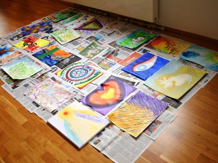 "Urška, najlepša hvala za tvoj seminar. Že ob prvi meditaciji sem čutila pretok pozitivne energije v telesu. Zanimivo je, da je bilo vreme na dan seminarja oblačno. A vsakič, ko sem stopila na kraj, ker so se sušile naše energijske slike, se mi je zazdelo, da je skozi oblake posijalo sonce. A ko sem pogledala skozi okno, je bilo še vedno oblačno. Zazdelo se mi je, da naše slike dejansko oddajajo svetlobo. Sinu so bile moje slike, ki sem jih izdelala na seminarju, zelo všeč. Obesila sem jih zraven njegove delovne mize. Sin je bil prejšnji teden izjemno uspešen, srečen in zadovoljen. V tem kotičku je zdaj zelo prijetno sedeti. V mislih imam že naslednje slikarske projekte, čutim pa tudi pretok pozitivne energije. Upam, da bomo še kdaj skupaj slikali." Ana |